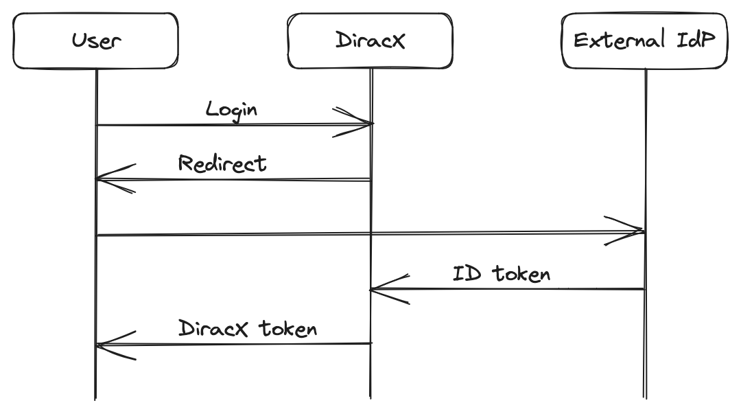 - Add diagram of the role of the external IdP, DiracX and the user